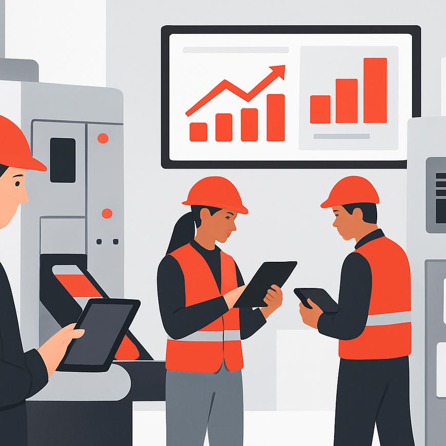 Pour remédier à ces problèmes, il est crucial de mettre en place des solutions robustes combinant amélioration continue et digitalisation. L’adoption d’outils comme TeepTrak permet d’assurer un suivi précis et en temps réel du TRS/OEE, facilitant l’identification des inefficacités. Mesurer les temps d’arrêt précisément, évaluer les pertes de performance et de qualité, et utiliser des données pour un process de decision-making basé entièrement sur des faits sont quelques-unes des étapes essentielles. Cela implique aussi la formation de personnel sur des méthodologies Lean et sur le Total Productive Maintenance (TPM) Maintenance productive totale (TPM) pour maintenir une amélioration continue.